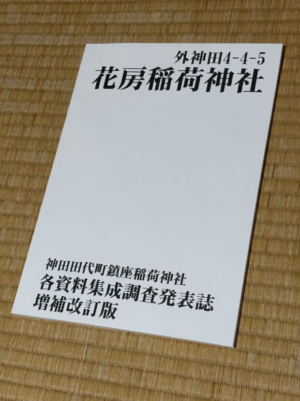 コロナや風邪が流行り、不況が続くこのご時世にぴったりなご利益の神社といえますが、詳しいことについては秋葉原地域の文献を調べているサークルが資料をまとめ、「花房稲荷神社の同人誌」を刊行しておりますので、花房稲荷神社について深く知りたい、理解を深めたいという場合は是非こちらをご参照ください!
