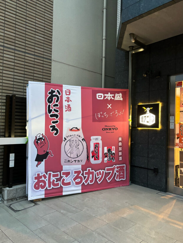 「音アニ」とはONKYOがプロデュースする音とアニメをコンセプトにしたアニメ専門リアルストアである。この「音アニ」が2024年8月に「ぼっち・ざ・ろっく!」と「日本盛(ニホンサカリ)」がまさかのコラボレーション!ONKYO(オンキョー)の最新機器と技術を使い「ぼっち・ざ・ろっく!」の音楽を聴かせて熟成させた「日本盛(ニホンサカリ)」を醸造! 楽曲加振熟成酒「おにころカップ酒」と廣井きくりちゃんグッズの販売を開始したのだ!