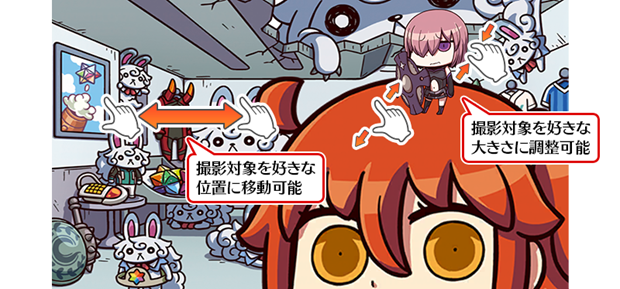 撮影対象を好きな位置にスワイプで移動させたり、ピンチイン・アウトすることで好きなサイズに調整することもできます。