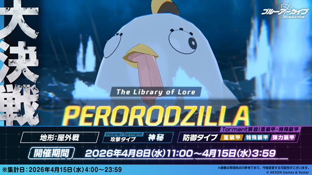 2026年4月8日(水)11:00より、大決戦「ペロロジラ」を開催する。