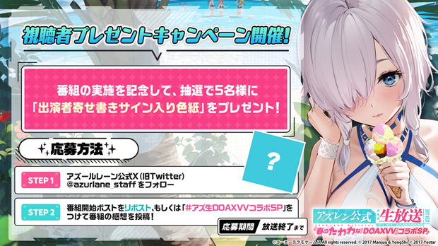 アズールレーン2026年4月13日サングラスで勢ぞろい!気の早い夏を先取り!?「4月のアズレン公式生放送-春のたわわな『DOAXVV』コラボSP-」は相変わらずのギリギリを出演者全員で攻めまくる!?