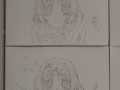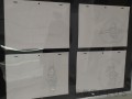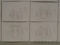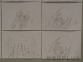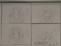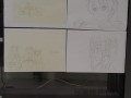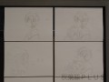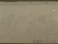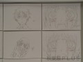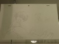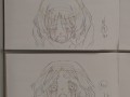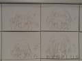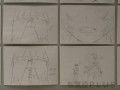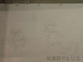 今回は設定資料や美術資料等はほぼなく、複製原画&実際に使用された原画が大量に展示されていた。リドル展ほど多くはないが、1時間ほどかけて見て回るには丁度良い量となっている。さらに、連続したシーンを展示してあるのでアニメのシーンを脳内に再現しつつ原画を見るとまた違った面白さを感じることができるようになっている。数が多いのでギャラリー形式で一気に紹介していくので、気になる原画はクリックしてみてほしい。まずは巨大モニター下の原画だ。順番は揃えてある。