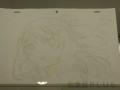 通常の展示なら複製原画のみだと思われるが、今回は特別展と銘打っている通り普段見ない展示があったのだがその一つがこの巨大原画だろう。あの顔やあのキャラをほぼ等身大、もしくはそれ以上の迫力で見ることができる面白い企画となっている。写真で見るといつもの原画とあまり印象が変わらないので、この展示のみは是非実物を見ていただきたい!