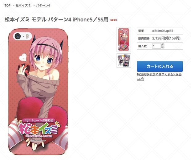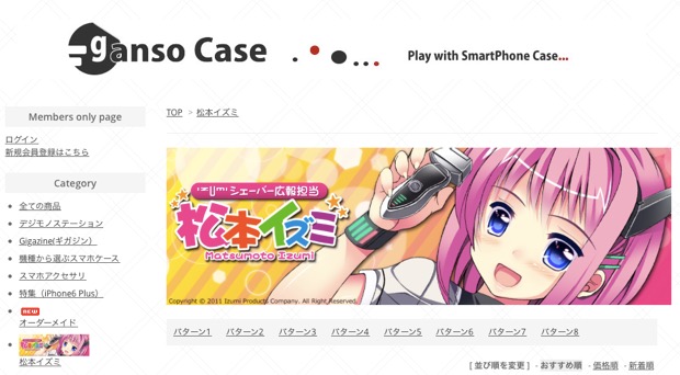 2015年4月1日には限定数3個という超レアな大森杏子ちゃんとのコラボケースも発売されて波に乗っているシェーバークィーンといえば「松本イズミ」だが、そのイズミちゃんのスマホケースが現在発売中と言うことで、通販サイト「Ganoso Case(http://gansocase.shop-pro.jp/)」の「松本イズミ」カテゴリを見てみた。