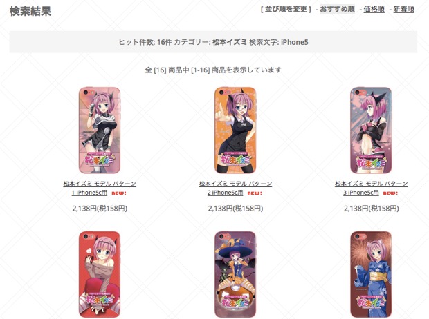 種類が多いので、今回はカテゴリに「松本イズミ」を選択し、自由入力に「iPhone5」と入力して検索!!