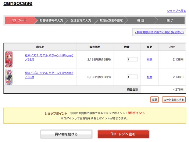 レジへ進むをクリック。もう一個増えてるのは気にしない。