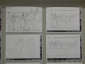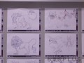 この数枚の写真でも動きはわかるのだが会場にはこの数倍もの枚数の紙が束になった状態で自由に閲覧できるようになっている。原画以外の展示も確認していこう。まずは主人公の灰村諸葉の巨大ポスターが目印のエリアから見ていこう。