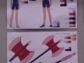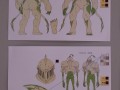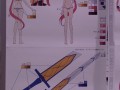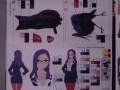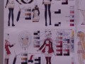 ガラステーブルには設定資料等が束になった複製資料をじっくりと見ることができる。こちらは人物の設定から色指定、さらには武器や敵キャラも。展示されていた資料を目の前で見ることができるぞ。