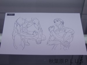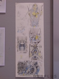 そして会場の一番奥には絵コンテが設置されているのだが、実はこの絵コンテは上映前(現在は上映中)の<harmony/>の全編の絵コンテが置いてあるのだ。この絵コンテ全てを見ると内容が全て分かってしまうと言うのだが、できれば上映作品も一緒に見て違いなどを見つけると面白いかもしれない。