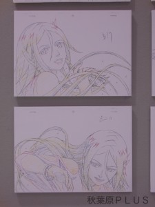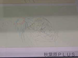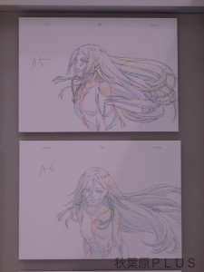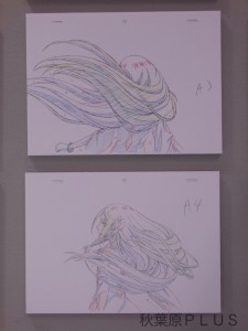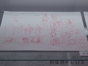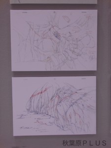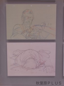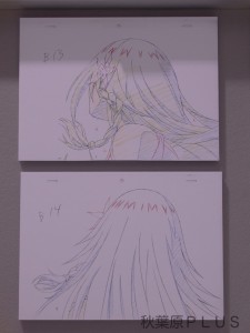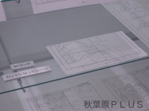 それでは戻って次のスペースを見ていこう。ここからは原画や絵コンテなどの資料の展示が主になってくる。作画修正の前後を見る事ができる展示も多いので、色々と勉強にもなるはずだ。