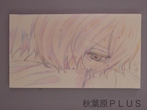 ハヤカワ文庫の文庫本の表紙ともなっているイラストを中心に、今回映画化された<harmony/>に関する原画、資料等が展示されている。まずは入口脇に当たるスペースにはイーゼルによるイラストの展示販売が行われている。販売自体はWEB通販という事でQRコードを読み込むと購入サイトへつながるようだ。今回は各イラストと共に作品説明、QRコードも読み取れると思うので遠方の人は気になったモノがあればチャレンジしてほしい。