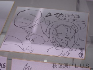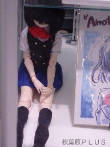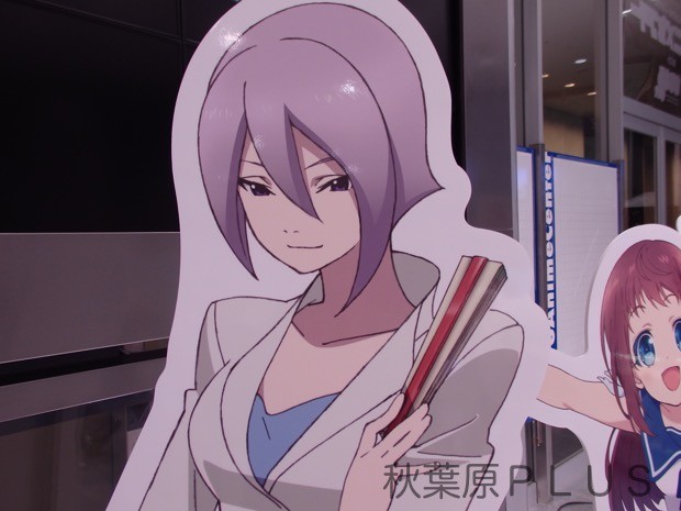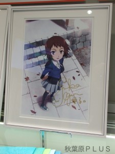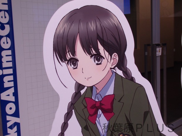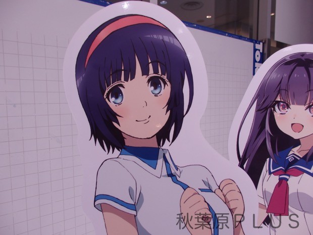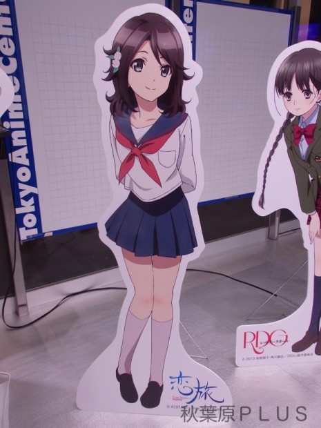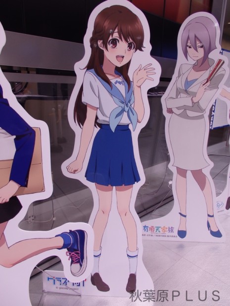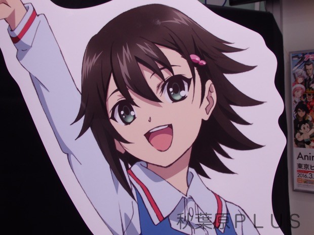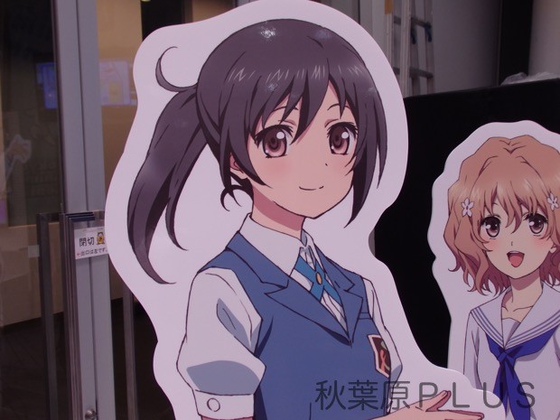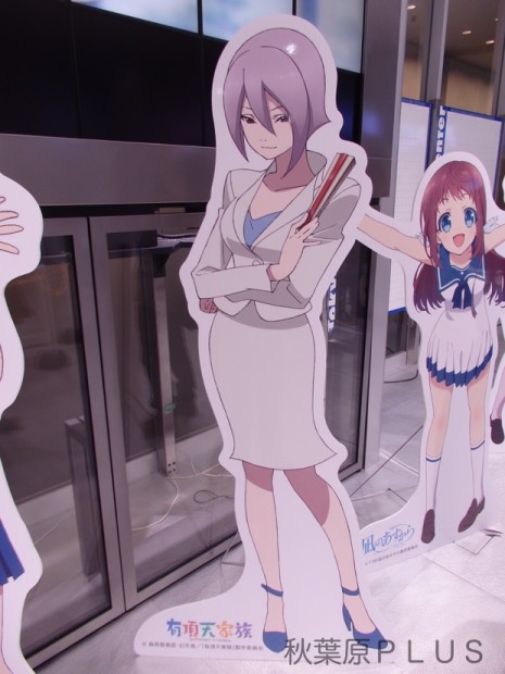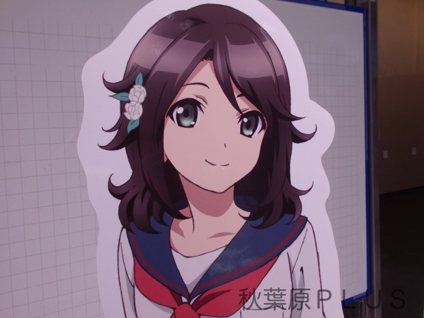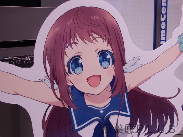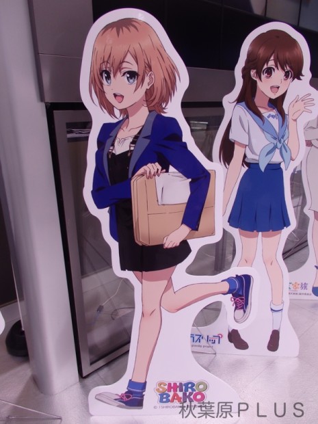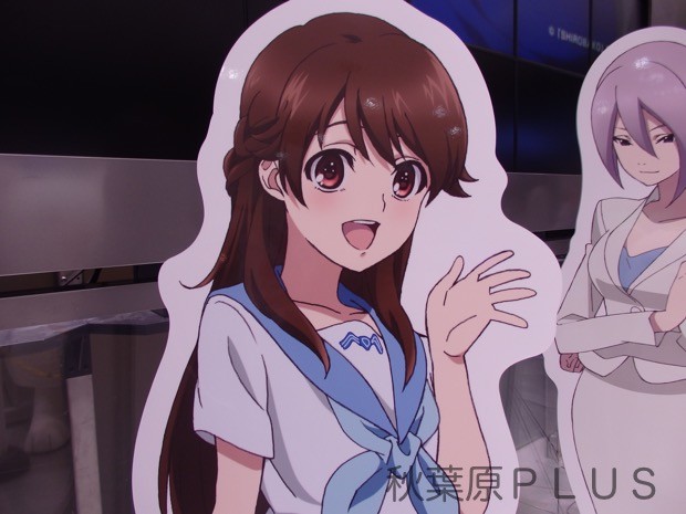 その反対側には新作アニメの巨大なイラスト。中央にはSHIROBAKOで見たあのキャラクターの等身大(?)というよりも実物大(?)のグッズも展示中だ。