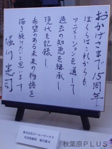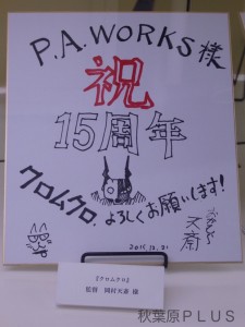 P.A.WORKS15周年ということでメッセージ色紙も展示されていたので見ていこう。