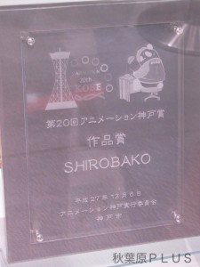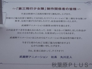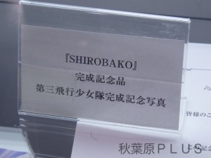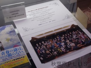 そしてガラスケースの中には新作アニメ情報の他、今まで受賞した賞や特製グッズなどが展示されていた。SHIROBAKOの第三飛行少女隊の打ち上げ時の記念写真もしっかりとあるぞ!
