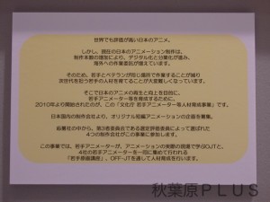 それでは個別に見ていこう。まずは「あにめたまご」の様子から。この事業で行われた講座などの様子が展示されている。課題もあるので気になる人は見ておこう。