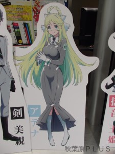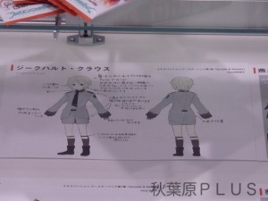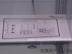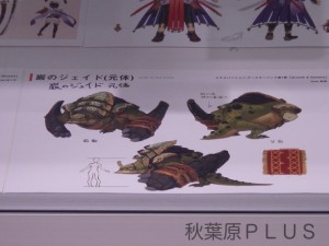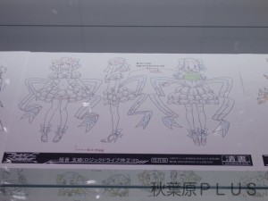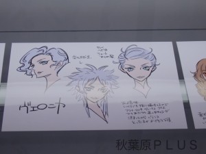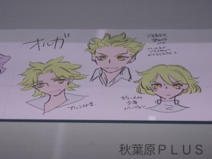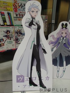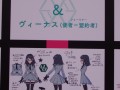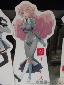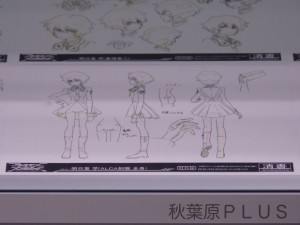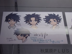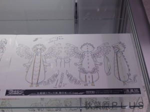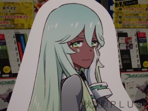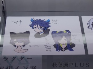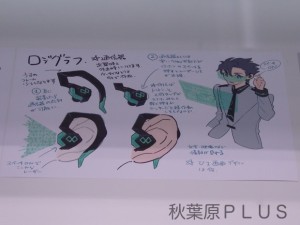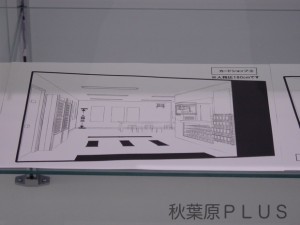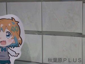 巨大モニターのパーティションの脇には下の写真のような展示コーナーが作られている。現在連載中のコミックなども展示されている。