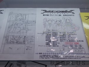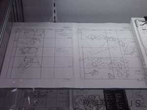 レジ前の裏側のエリアではこの絵コンテがガラスケース内に展示されている。他、原画もシーン別での展示となっているのでアニメのシーンを思い出しつつ見ても楽しい。