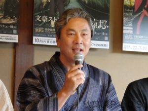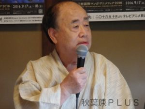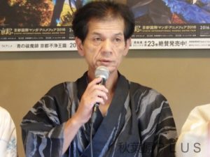 最初に「京まふ」の発起人でもある門川大作京都市長による挨拶が行われた。5年目を迎える「京まふ」。イベントとして地場産業との関連や西日本最大のマンガ・アニメの祭典と成長してきた発展の様子を振り返りつつ、2016年は京都市動物園やローム・スクエアとの連携などさらなる発展をしている「京まふ」をアピール。さらには文化庁の京都移転の件にも触れ、ますます文化の中心地となる京都の未来を視ているようだ。