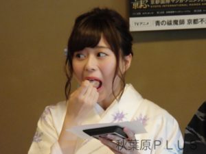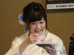 水瀬さんも驚いたのだろう。「信じられない!」といった顔でしっかりと「八ツ橋舞妓ちゃん」の写真を視ている。