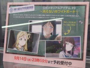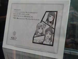 会場には今回の展示とは別でラブライブ!サンシャイン!!の公式通販サイトのグッズも展示されている。購入は通販サイトで期間限定で販売中なので見逃さないようにしよう!
