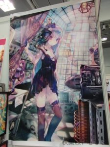 TokyoOtakuModeのブースの壁には海外向けに人気のありそうなイラストが展示されていた。