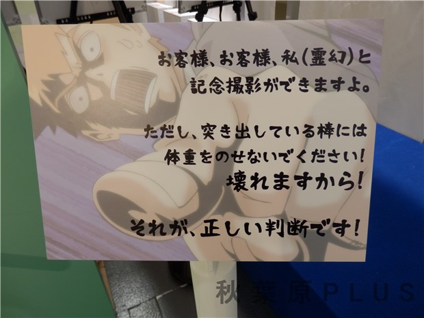 入り口を入って右手には霊幻との記念撮影コーナーが設置されている。注意書きにもあるように突き出ている棒は折れやすいようなので特に注意して欲しい。