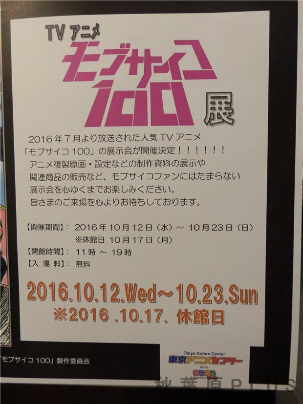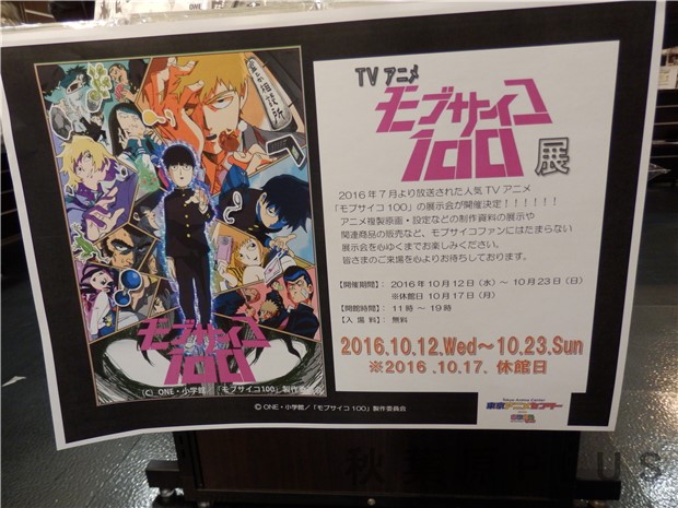2016年7月期にアニメ化された「モブサイコ100」の原画展示などが東京アニメセンターで2016年10月12日(水)からスタートしたので初日の雰囲気をちょこっと見てみよう!