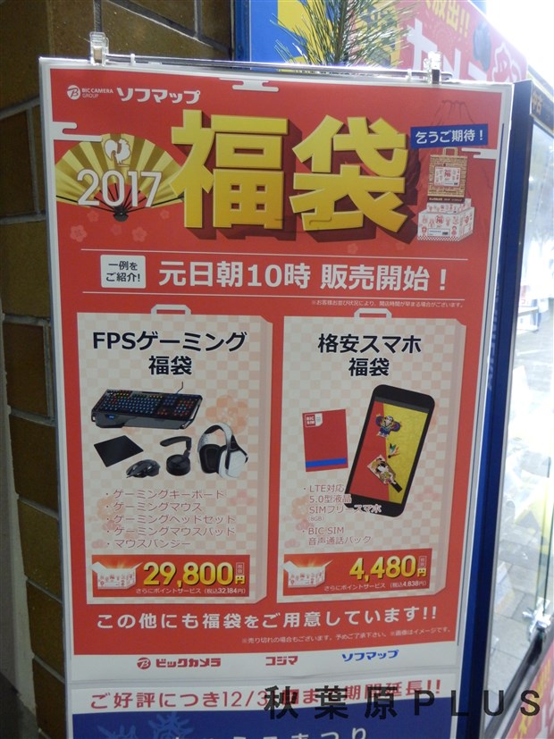 ソフマップ秋葉原本館他では元旦朝10時から福袋を販売。FPSゲーミング福袋や格安スマホ福袋が目玉商品として用意されるようだ。他にも複数種類の福袋が用意されるようなので期待したい。