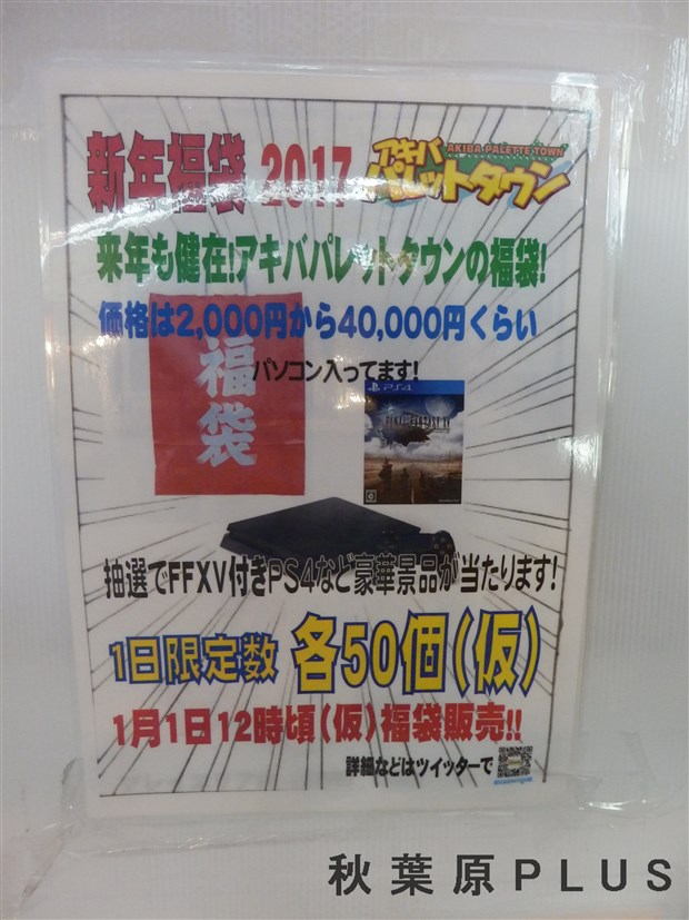 アキバパレットタウンの福袋は元旦の12時頃(仮)とされている。このゆるさが秋葉原っぽいかも。