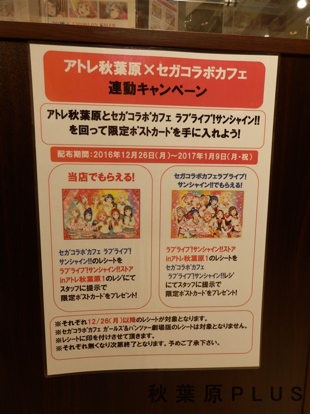 TVアニメ「ラブライブ!サンシャイン!!」とアトレ秋葉原が期間限定でコラボレーションイベントを2016年12月26日(月)~2017年1月9日(月・祝)まで開催している。