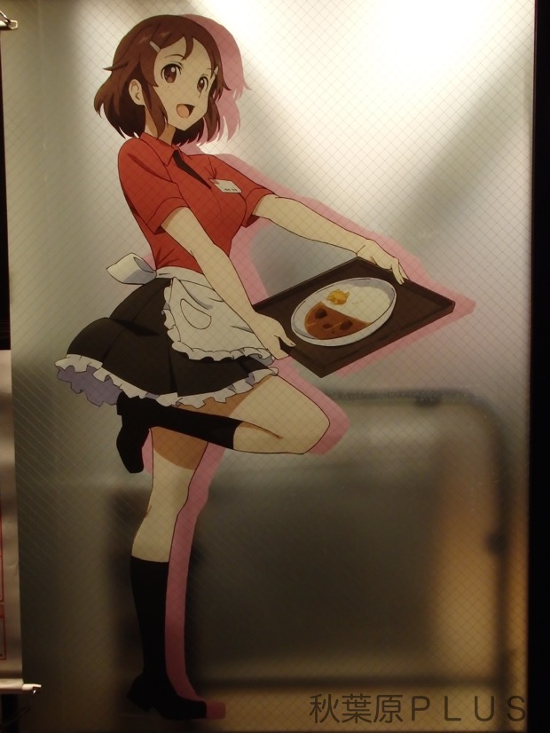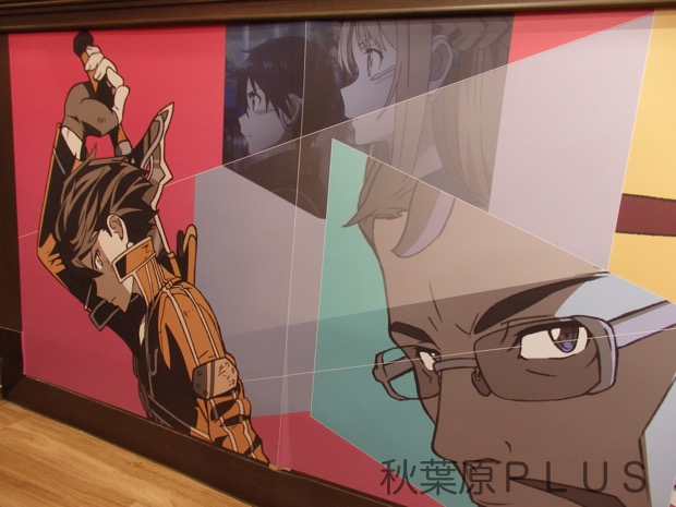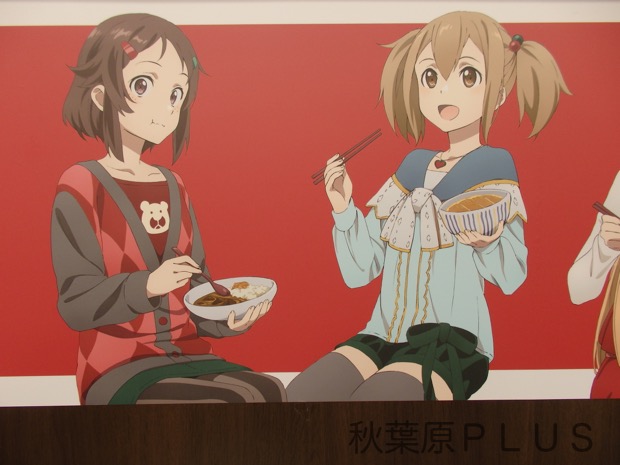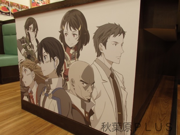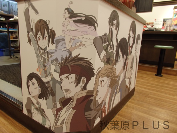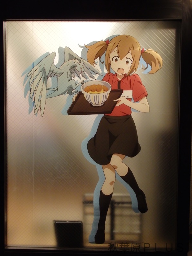 店舗のガラス面にはリズとシリカが。こちらもスタッフ衣装だ。