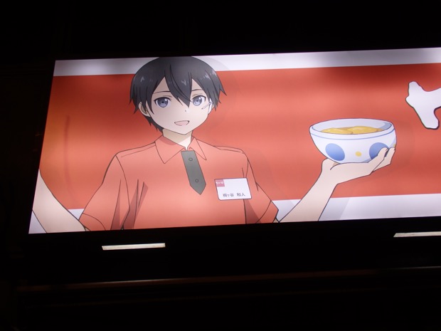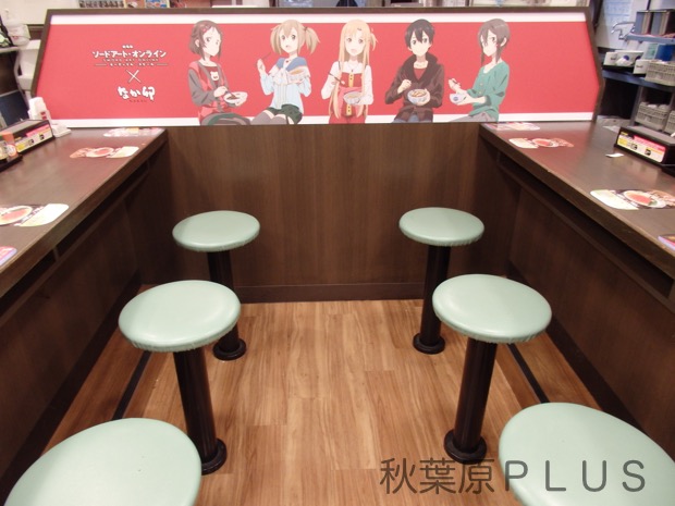 土曜日とは言え深夜2:30の秋葉原、人通りも無く寂しい通りにオアシスのように煌々とした店舗のなか卯。キリトやアスナが見えるのが心強い。