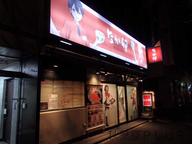 秋葉原の歩行者天国の終わり、末広町駅から近い場所にソードアート・オンラインとのコラボを実施しているなか卯がある。今回は深夜2:30過ぎに唐突に「なか卯のうどん」が食べたくなり店舗へ向かった。
