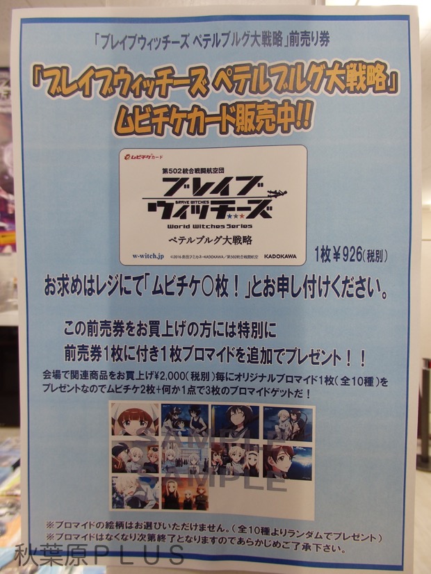 その前に、映画の前売券だ。他でも前売券は1000円で販売中とのことだが、この『ブレイブウィッチーズビジュアル展』の会場で購入すると、1枚購入でランダムで1枚のオリジナルブロマイドがついてくる! 価格も手頃感が強いので1枚購入しておくと良いだろう。
