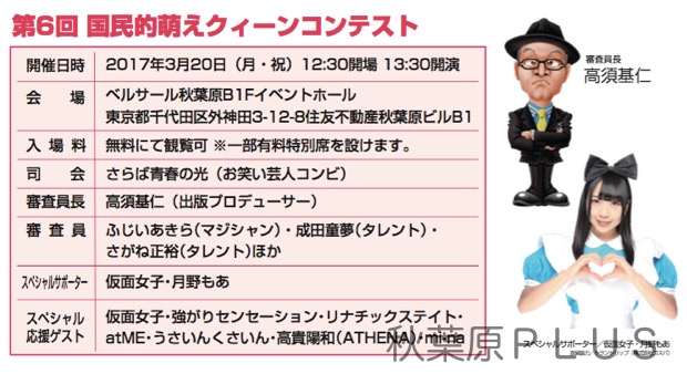 それでは本日(2017年3月20日)の12:30会場、13:30開演の『第6回 国民的萌えクィーンコンテスト』で待っている!
