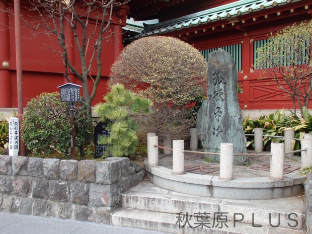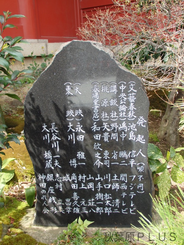 場所は神田明神の御神殿の右手側奥、裏手脇にある。碑には発起人になった日本作家クラブのメンバーの名前が書かれた碑もある。