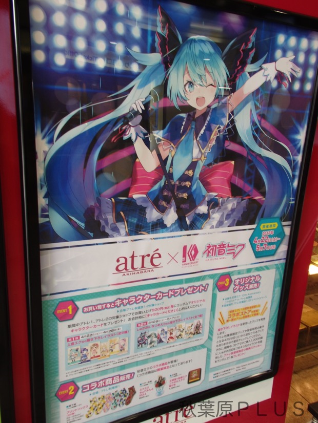 アトレでは初音ミクを含めたボカロとのコラボが実施中。土曜日は朝から行列ができるなど結構な人気のようだ。