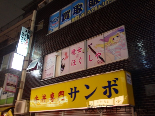 牛丼サンボのビルの2階。こんな魔女っ子の絵が書いてなかったともうのだが…。