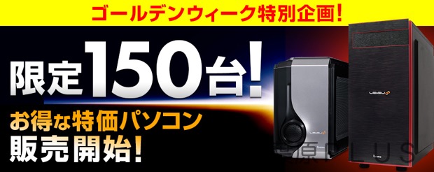 パソコン工房WEBサイトではゴールデンウィーク期間中に数量限定の特価パソコン2機種を発売決定。まだ在庫はあるようなのでゴールデンウィーク中だが紹介していこう。限定数は合計150台だ。