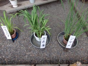 展示だが、会の名前の通り「花菖蒲」を展示。良く「花菖蒲」と「カキツバタ」「あやめ」の違いを訊ねられるが、咲く時期が違うため現在展示しているのは「花菖蒲」のみとなる。