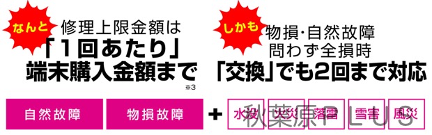 - 修理上限金額は、「1回あたり」端末購入金額まで※3