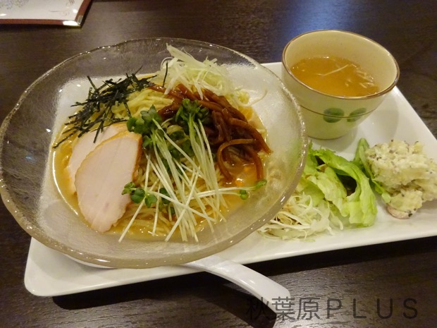 こちらがこの日の日替わりの冷やし味噌ラーメン。スープとサラダがつくのが女性に嬉しいポイントだ。それではいただきます。