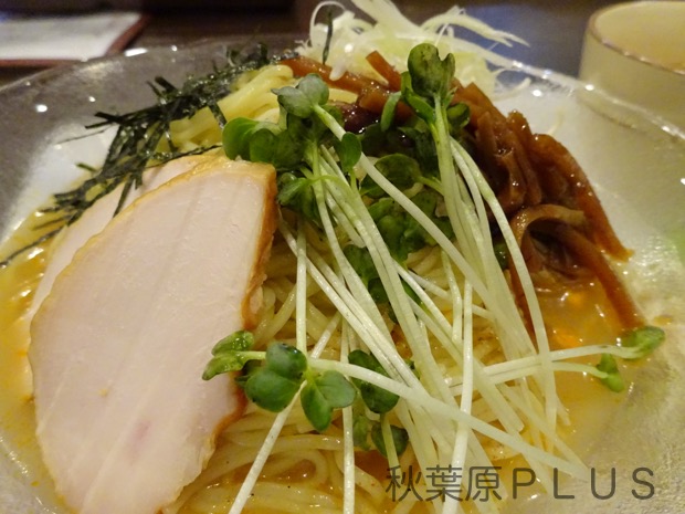 崩すのがもったいないくらいに綺麗に盛られたトッピングたちがBarである事すら意識させない。それでは麺をズルズルと。