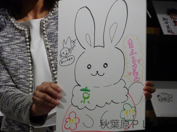 こちらのイラストは京まふ期間中は京都国際マンガミュージアムに展示される予定となっている。また、京まふ会場では京都の老舗「伊藤軒」さんによる飴細工での「まふうさたん」の販売が決定。記者会見会場には実際の「まふうさたん」が登場し、会場が笑顔で溢れた。