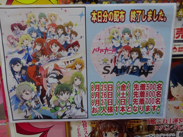 それでは早速と行きたいのだが、その前に今回の配布について幾つか注意点を挙げておこう。まず1つ目は、とりあえず店舗に入ったらスグに店員(スタッフ)を探して『バトルガールハイスクールのうちわはどこで配布してますか?』と確認することだろう。色々と話などを聞くと「店頭配布」していたりカウンターの裏にあって「訪ねて来た人」に配布したりと、「同じ店舗」でも時間帯で対応が異なる模様。また配布も店頭だったり他のフロアのカウンターだったりと結構厄介。その為、まずは店舗についたらスタッフを捕まえて確認しよう!