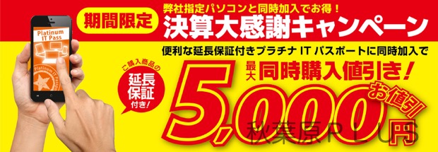iiyama PCご購入時、月額会員サービス「プラチナITパスポート」の指定プランにご加入いただいた場合、最大5,000円割引を実施するとのこと。この機会に、是非「プラチナITパスポート」へのご加入をご検討してみよう!