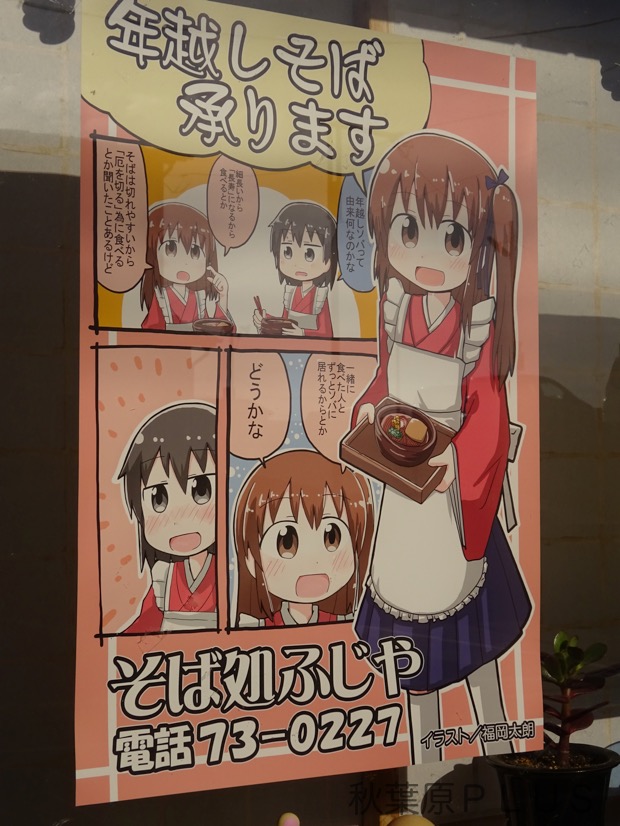 あぁ! 今年も無事萌えポスター確認できた! 藤屋さんを知ったのはハムスター速報での1記事がきっかけなのだが、今では3月の勝浦ビッグひな祭りの時期にお世話になったりとお世話になるようになってしまった秋葉原PLUS。それでは忙しい中、今年の締め蕎麦になる天ざるそば(800円)を食べることに。