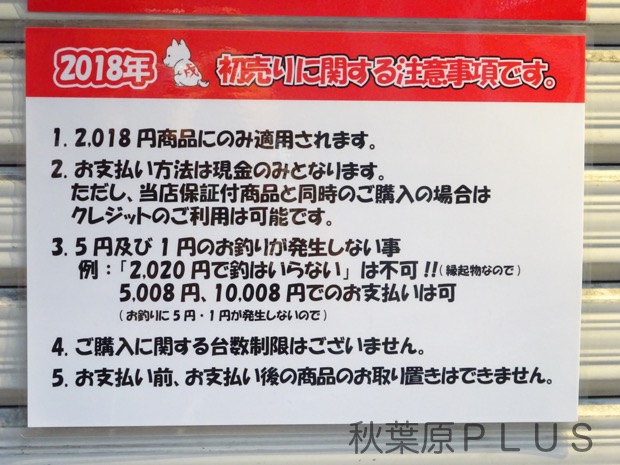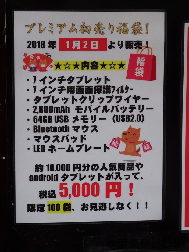 2018年も秋葉原は元日から営業するお店も多い。そんな中福袋目当てに並ぶ人も多いだろう。という訳で、全部ではないが写真が撮れたお店の初売り情報&福袋情報をお伝えしていこう。2018年から秋葉原、よろしくお願いします!