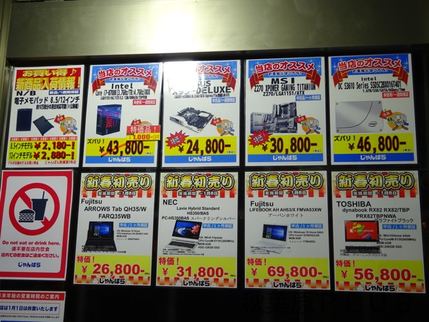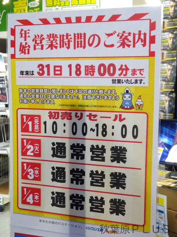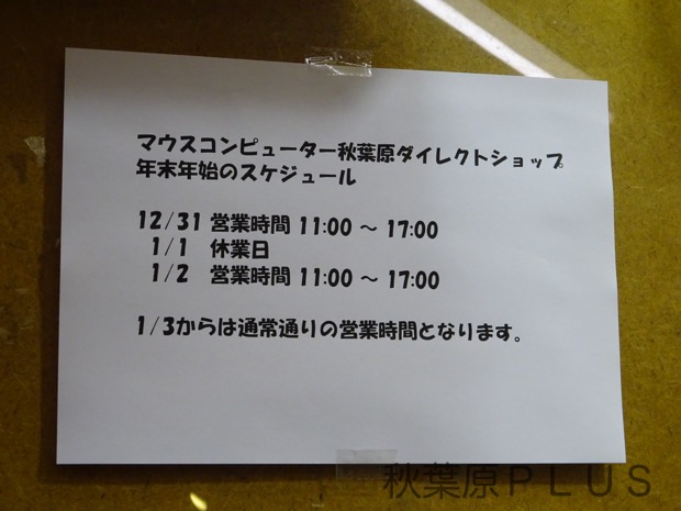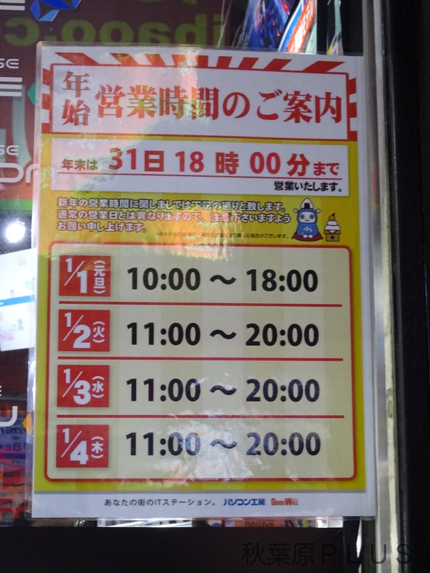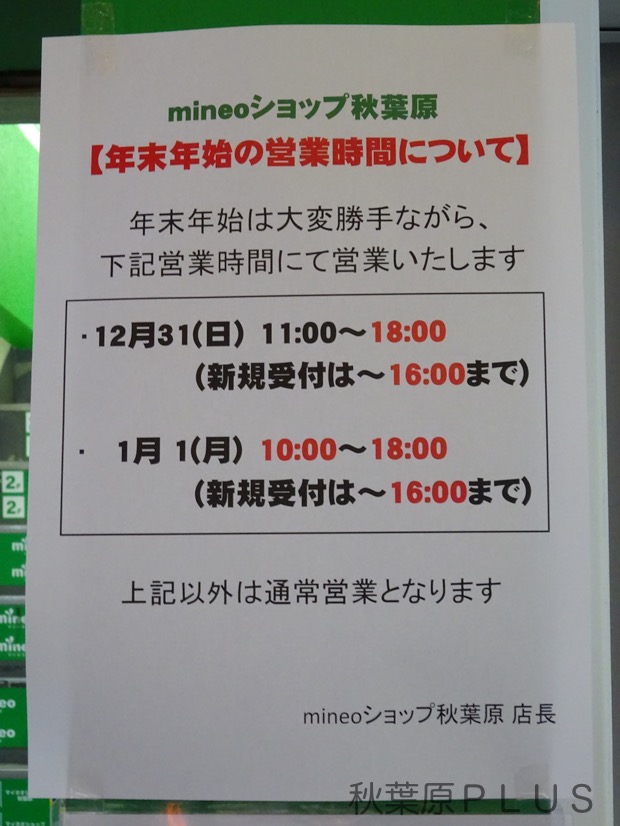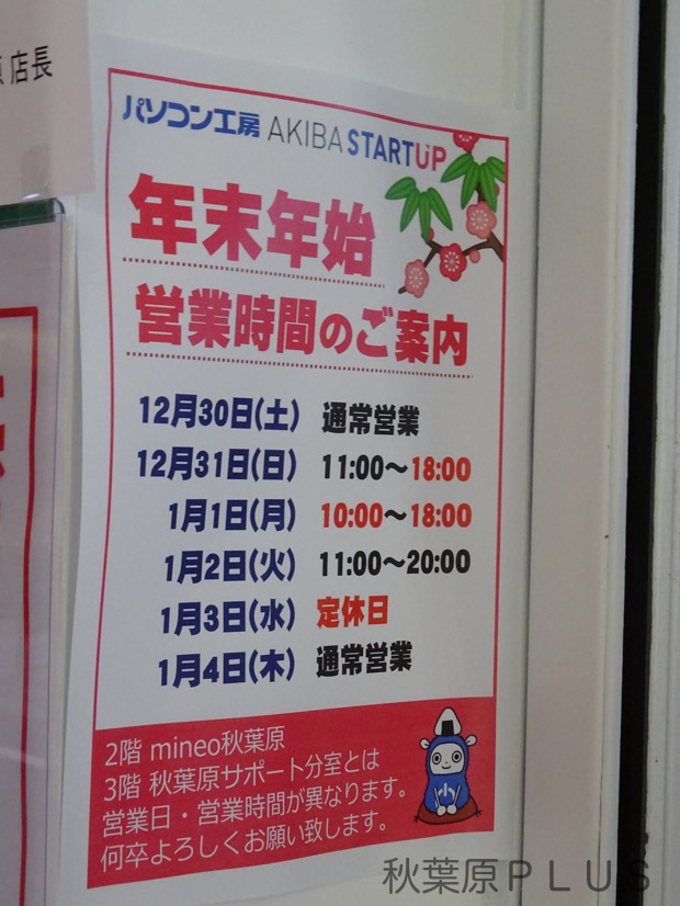 こちらはパソコン工房のAKIBA STARTUPとmineo。ともに元日からの営業だが、営業時間が短縮となって居るので注意しよう。