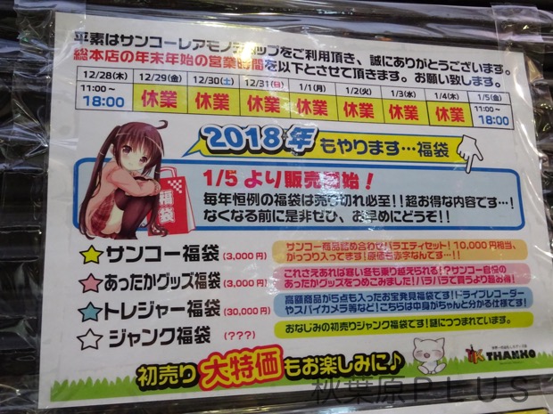 サンコーレアモノショップは2018年は1月5日からの営業。福袋も準備されて居るようなので、ちょっと遅めの福袋をGETしにくるのも良いかも?